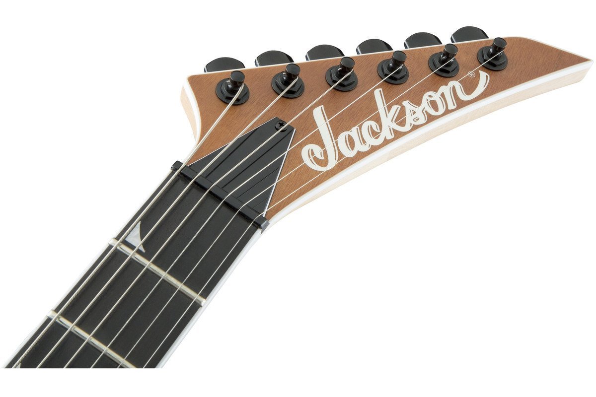 Всі відомі технології Jackson запропоновані в електрогітарі JACKSON SL2 HT PRO SOLOIST EBONY FINGERBOARD NATURAL MAHOGANY: чорна фурнітура, сатинове покриття натурального кольору, перламутрова інкрустація у вигляді зубів піраньї на грифі, одношарова обшивка деки і грифу та голова грифу з 6 кілками в ряд і написом «Jackson».