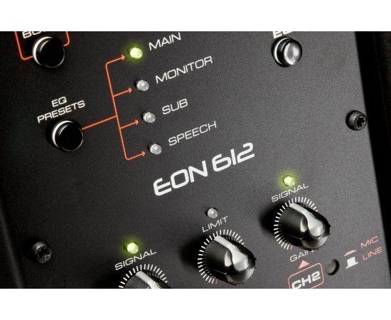 Основні переваги JBL EON612: 1000 Вт підсилювач забезпечує винятковий запас потужності; JBL технологія хвилеводу забезпечує плавне прозоре звучання; Вбудовані пресети еквалайзера дозволяють налаштувати систему для різних додатків; Інтеграція Bluetooth для зручного управління гучністю і параметрами еквалайзера; XLR Loop-Thru для маршрутизації сигналу на додаткові динаміки.