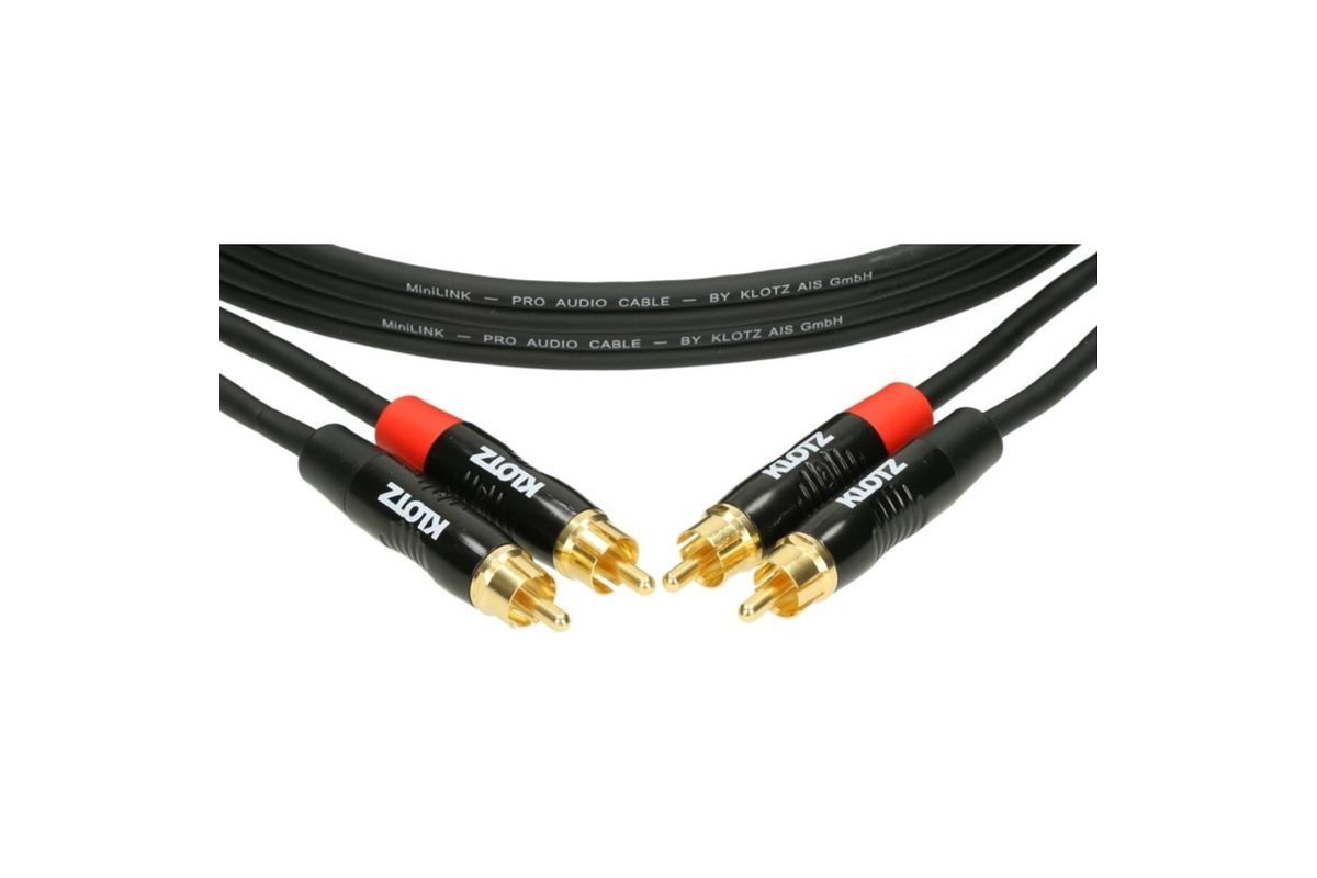 KLOTZ KT-CC090 MINILINK PRO STEREO TWIN CABLE 0.9 M - комутаційний кабель, який має міцну і гнучку зовнішнью оболонку. Має переріз 0.22 мм² і конструкцію zipcord. Кабель оснащений позолоченими контактами, а конектори 2 х RCA на 2 х RCA зроблені з міді.