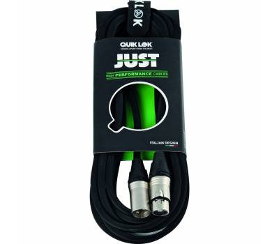 Кабель QUIK LOK JUST MF 15 SL представлений у чорному кольорі, має роз'єми XLRM/XLRF і довжину 15 метрів.