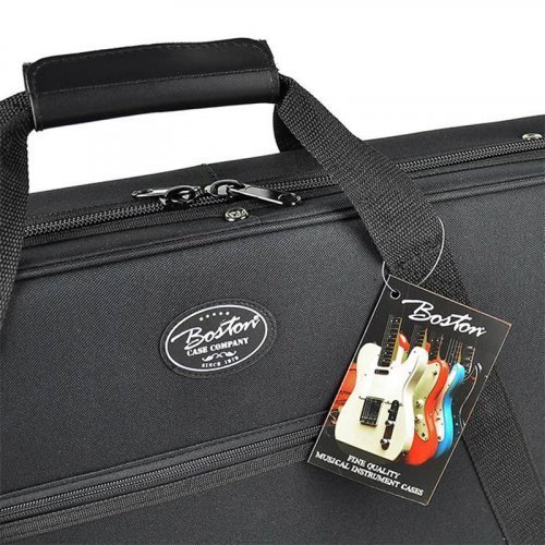 BOSTON CEG-250 - це полегшений кейс, в якому ваша гітара зможе комфортно зберігатися. Гриф і бридж захищені заглибленнями зверху. Вгорі знаходиться кишеню для аксесуарів з місцем для нот або особистих речей. Ви можете носити кейс CEG-250 або за допомогою знімного плечового ременя, або за допомогою двох нейлонових ручок для перенесення, які захищають руки від передавлюванні за допомогою накладки зі штучної шкіри, яка також має липучку для зручності.