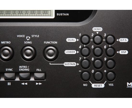 Не забули виробники також і про можливість підключення педалі сустейна. Вона дозволяє протягнути і збільшити довжину загасання звук навіть якщо ви відірвали пальці від клавіш, це дуже важливо для, наприклад, різного роду повільних, романтичних композицій. На звичайній фортепіано таку функцію виконує Права педаль. До речі, якщо педаль сустейна ще не встигли купити (рекомендуємо це зробити), то у інструменту є окрема кнопка "sustain". Вона, звичайно ж, не замінить повноцінну педаль, але на перших порах допоможе ознайомитися з принципом роботи цієї функції.
