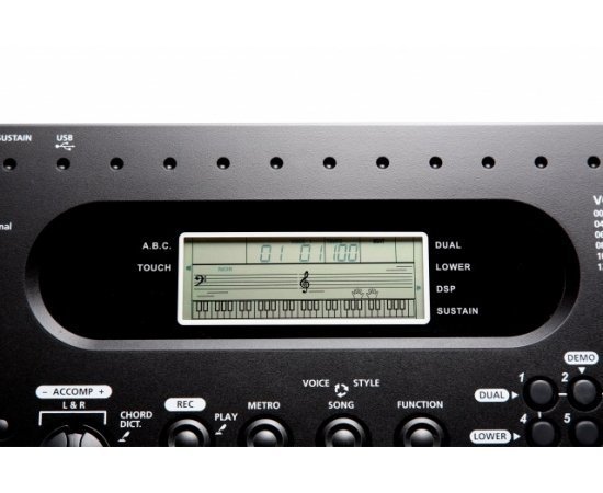 Синтезатор з автоакомпанементом, 61 клавіша з чутливістю до сили натискання. 32-голосна поліфонія, 300 тембрів, 100 стилів автоакомпанементу, 10 демо записів, 100 сонгов, рекордер, вхід для навушників, вхід для педалі Sustain, USB. 2 динаміка по 3 Вт. Розміри: 940 х 356 х 136 мм, вага: 3,75 кг. У комплекті пюпітр.