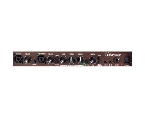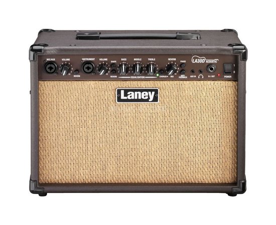 Laney LA30D - Комбопідсилювач для акустичної гітари, потужність 30 Вт RMS, динаміки 2х6 '', 2 канали, 3-х смуговий еквалайзер, AUX вхід, DI вихід, хорус, ревербератор, кнопка Shape, вихід на навушники.