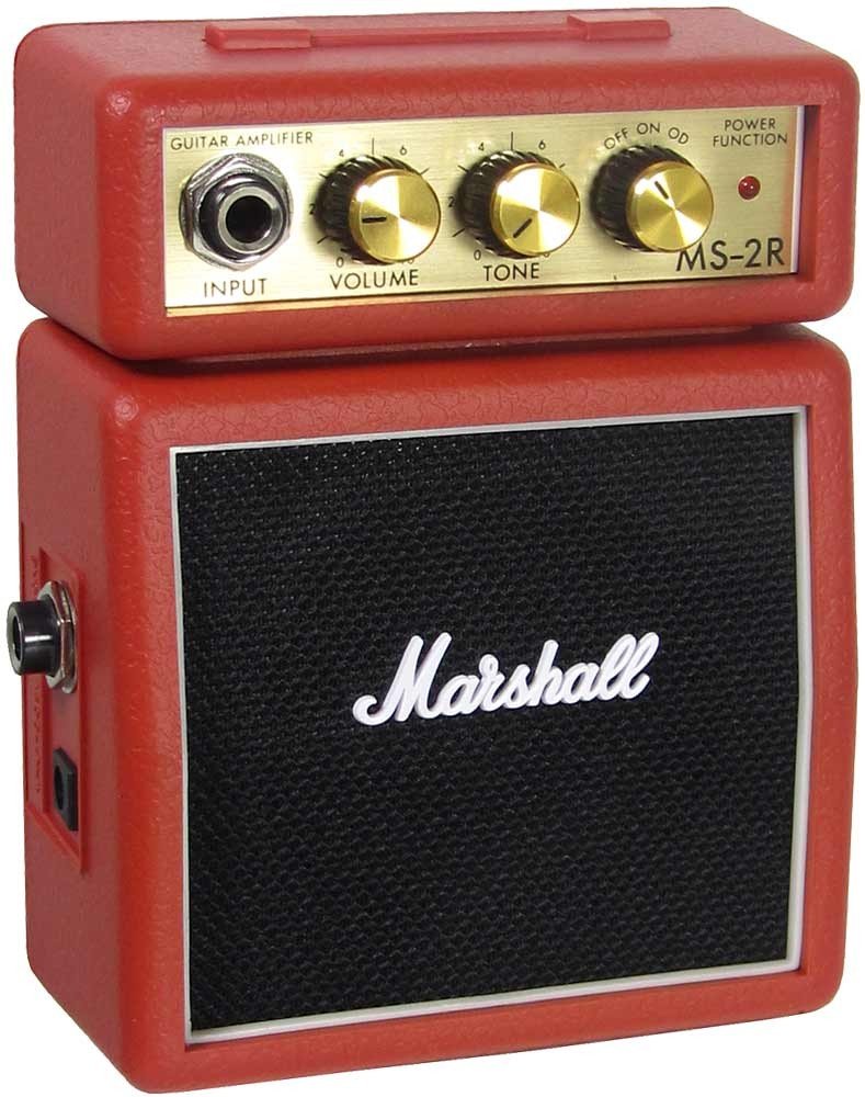 Мініатюрний найлегший комбопідсилювач. Його призначення - супровід не бажає розлучатися з гітарою людини в похідних умовах. На дачі, на вулиці, в поїзді, літаку, на курорті, в автомобілі - з MARSHALL MS-2R-E можна шуміти всюди.