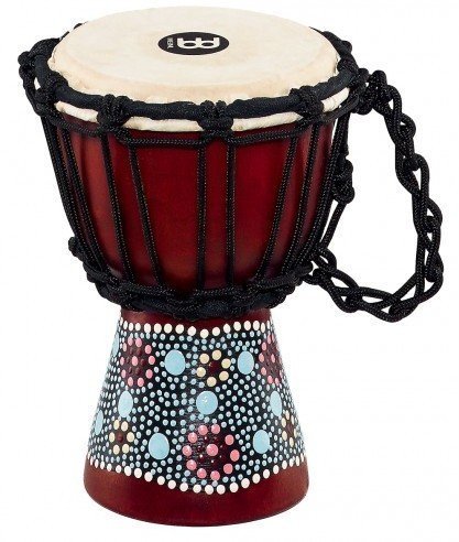 Джембе Meinl HDJ8-XXS Mini Djembe Flower Design 4 1/2" - ці джембе вирізані з цільного шматка дерева Mahogany Wood. Малюнок на барабані виконано повністю вручну. Їх компактний розмір ідеально підходить для насолоди грою у себе вдома або в барабанному колі. Дані високоякісні джембе мають мембрану з вручну відібраної шкури козла а також міцні нейлонові мотузки щоб забезпечити неповторний звук.