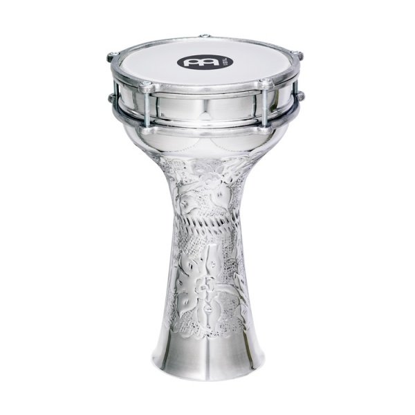 Дарбука Meinl HE-111 створена згідно конструкції традиційних турецьких дарбук. Інструмент з найвищим тембровим спектром з серії Meinl HE-11X. Корпус інструменту виконаний з алюмінію та оброблений унікальним стилізованим гравіюванням ручної роботи, мембрана - з високоякісного синтетичного матеріалу. Meinl HE-111 має досить широкий спектр звучання: від глибоких, розлогих басів до тривалих високих нот.