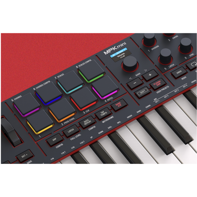 MPK mini MK4 Black оснащений інтелектуальними режимами Scale та Chord: ви можете “заблокувати” клавіатуру у вибрану гаму та грати лише “правильні” ноти, або перетворювати одиночні ноти на повноцінні акорди одним натисканням. Це прискорює роботу з гармонією, допомагає уникнути фальшивих нот і відкриває свіжі музичні ходи навіть тим, хто не має академічної музичної освіти.