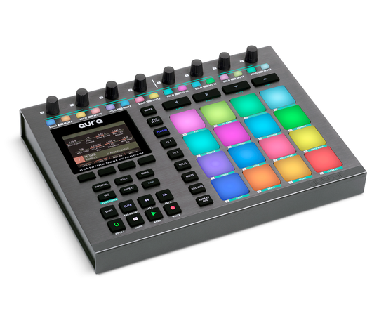 Nektar AURA - це потужний інструмент для створення бітів з 16 гіпер-чутливими RGB кольоровими педами, покроковим секвенсором і зручним управлінням плагінами. AURA забезпечує захоплюючий drum-machine-style робочий процес для будь-якої DAW або зовнішньої MIDI-установки.