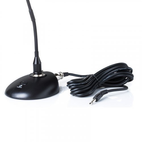 Мікрофон для конференцій Bespeco GM4018 - суперкардіоїдна конденсаторний мікрофон "гусяча шия", довжина 48 см. Мікрофон має яскраве кільце, яке світиться і означає, що він працює. База харчування має вимикач, який дозволить вам бути на зв'язку саме тоді, коли це потрібно. База харчування працює від батарей 2 х 1,5 Vcc AAA. Мікрофон може працювати і від фантомного живлення (без бази-основи). У комплекті є кабель з роз'ємами XLR - Ø 6,3 мм в комплекті, довжина якого становить 5 м.