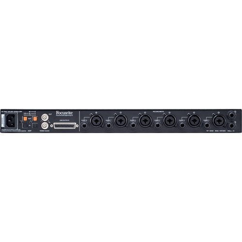 Входи передній панелі моделі оснащені великим запасом для зручної взаємодії з датчиками високої потужності, а задня частина інтерфейсу забезпечена універсальними комбінованими роз'ємами XLR / jack для решти автоматично перемикаються мікрофонних і лінійних входів. Для додаткової гнучкості кожен з них включає в себе власну точку перемикання введення, яка дозволяє підключати компресори, еквалайзери або інші аналогові пристрої обробки даних до одного кабелю. Більш того, вставки мають вбудований релейний байпас, тому у вас є можливість підключити ваше зовнішнє обладнання або патчбей і бути готовими до роботи за допомогою одного натискання кнопки.