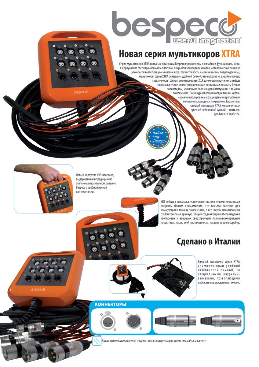 Bespeco XTRA1608L50S - кабель мультикор, 50 м, 16 входів, 8 виходів, XLR роз'єми.