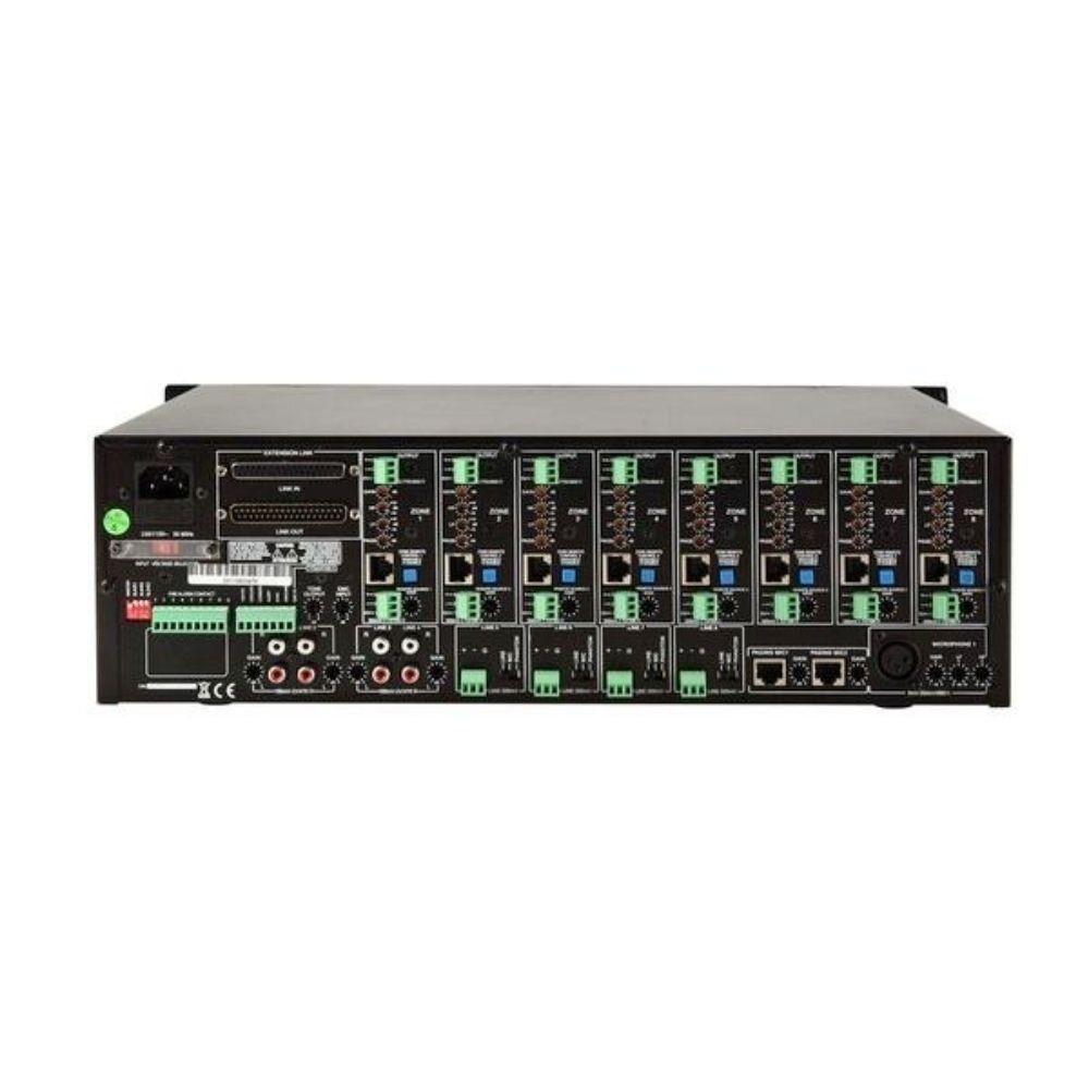 • Управління: 8 портів RJ45 для підключення 8 пультів дистанційного керування (по одному для кожної зони) через кабель CAT5;
