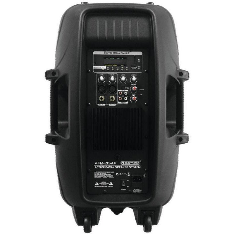 Omnitronic VFM-215AP акустична система, 2-смугова, активна, 15''+1'', 150/300Вт, max.SPL: 122дБ, 45-20000Гц, 15 кг, MP3-програвач, USB, SD, BT, пластиковий корпус