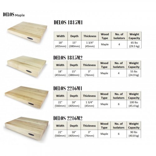 DELOS 2216M2 - підставка створена для ізоляції програвачів вінілу і аудіокомпонентів від будь-яких перешкод, викликаних зовнішніми вібраціями і резонансами. У виготовленні Delos застосовується масив клена або волоського горіха, які мають значну твердістю і міцністю. Розробники компанії знайшли найбільш ефективне рішення для зменшення впливу зовнішніх вібрацій, об'єднавши деревне масив із запатентованою технологією ізоляції Is oAcoustics і сумарно здобувши велику синергію. Платформа збільшеної площі IsoAcoustics Delos 2216M2 виконана з масиву клена прямокутної форми з додатковими віброізолірующіі опорами.