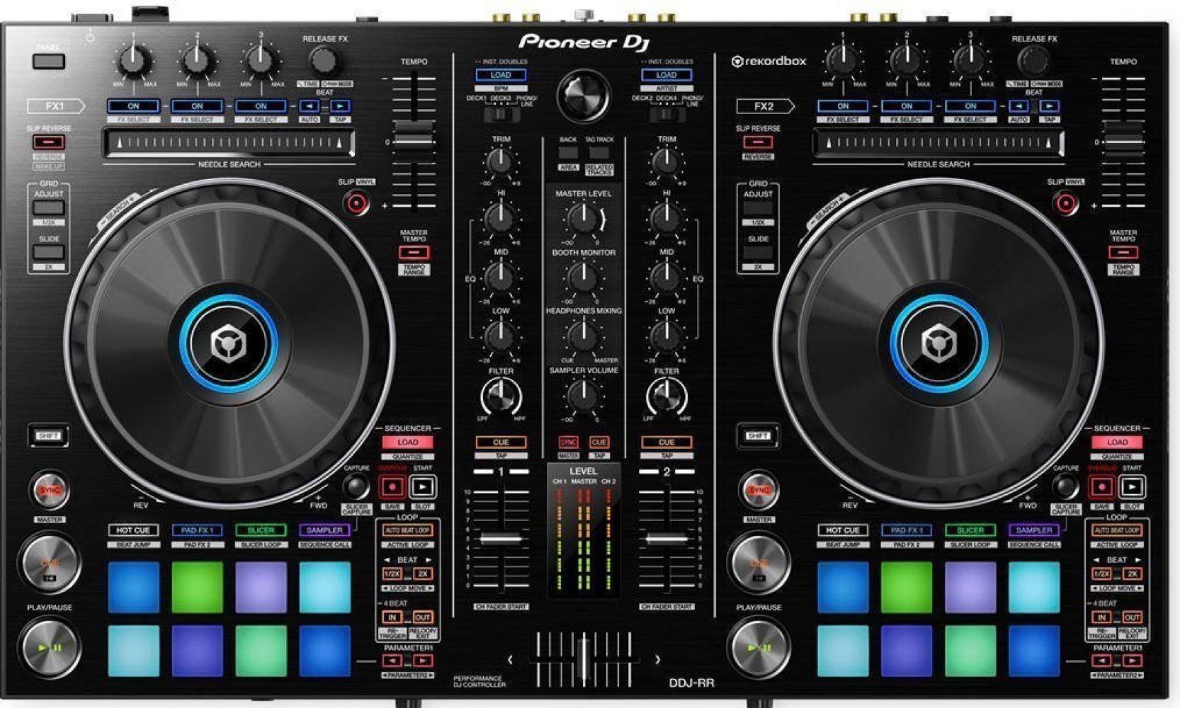 Новий DJ-контролер Pioneer DDJ-RX для роботи з програмним забезпеченням Rekordbox DJ і Джога 132.5 мм. Великі сенсорні джог оптимізовані для ідеального відповіді при ськретчинг. Мікшерну частина контролера можна використовувати в автономному режимі. Володіє 4-канальним мікшером, який можна використовувати автономно; 16 великими прогумованими педами з RGB-підсвічуванням; опрацьовані: швидкий відгук і максимальна інтеграція з Rekordbox DJ; джог виготовлені з алюмінію, мають низьку затримку і вмонтовані дисплеї в центрі; дисплеї відображають маркери точок і позицію відтворення.