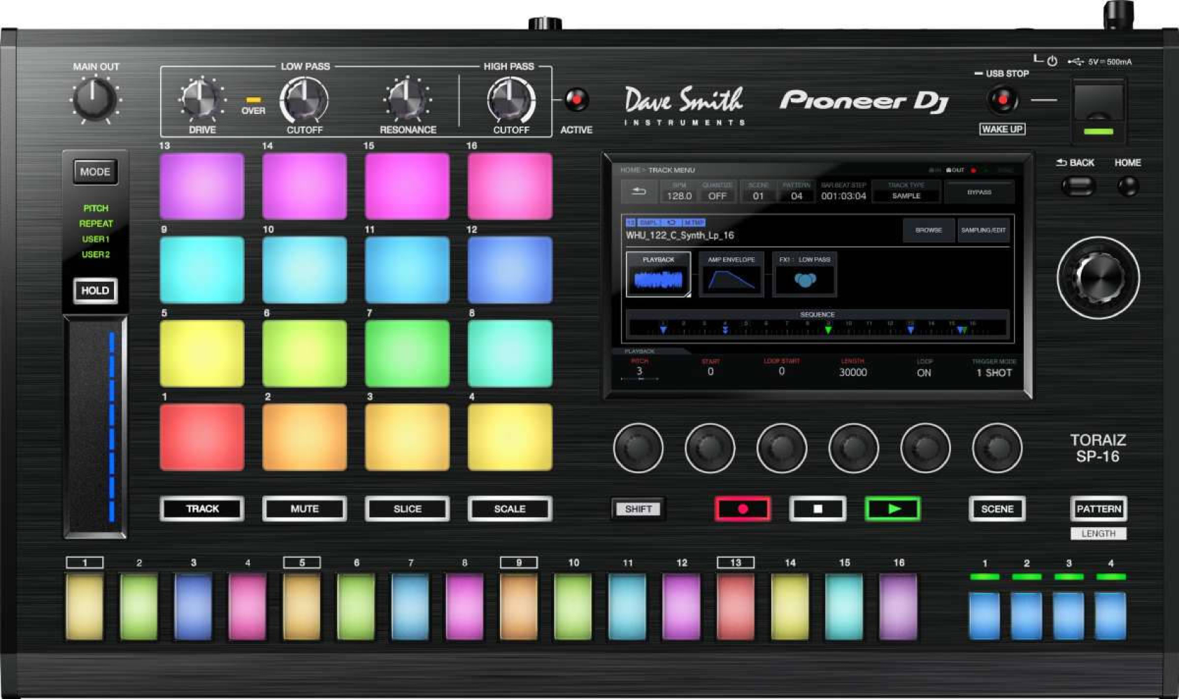 Компанія Pioneer DJ на виставці Musikmesse 2016 анонсувала професійний семплер і кроковий секвенсор Toraiz SP-16. Варто відзначити, що це перший пристрій подібного типу в асортименті виробника, причому створено воно було в тісній співпраці з відомим розробником синтезаторів Дейвом Смітом (засновником компанії Dave Smith Instruments), завдяки чому оснащено вбудованими аналоговими НЧ і ВЧ фільтрами на базі синтезатора Prophet-6.