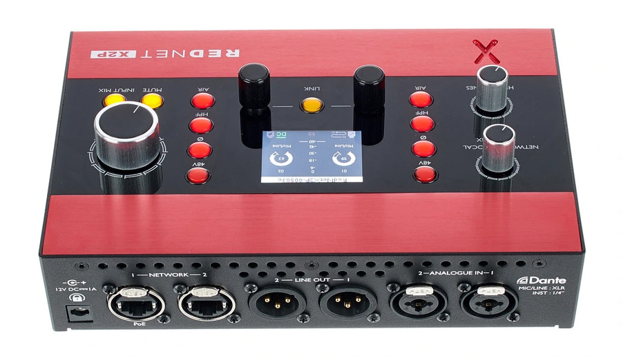 Мікрофонний передпідсилювач FOCUSRITE RedNet X2P — це компактний, портативний і надійний інтерфейс 2x2 Dante з 2 мікрофонними передпідсилювачами Red Evolution, лінійним стереовиходом і стереопідсилювачем потужності для навушників. Він дозволяє без зусиль підключити високоякісний аудіоінтерфейс Dante і надає потужність, аудіо, годинник і дистанційне керування за допомогою всього лише одного кабелю Ethernet: просто використовуйте перемикач або інжектор Power-over-Ethernet. Регулятор Local Input Mix здійснює керування моніторингом у стилі «більше мене», а режим блокування управління гарантує, що налаштування залишаться незмінними при дистанційній роботі.