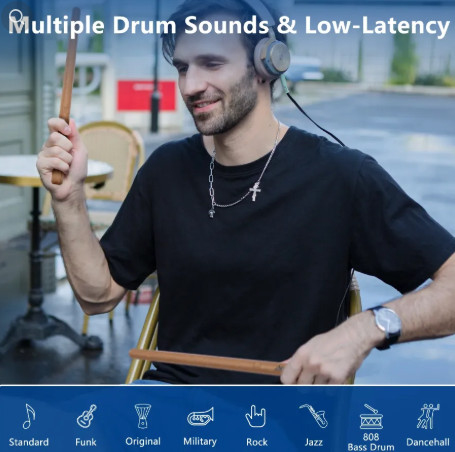 PocketDrum 2 Plus звучить так само добре, як і традиційна ударна установка і пропонує набагато більше можливостей. Насолоджуйтесь чіткими бітами з низькою затримкою, будь то через навушники або автомобільні динаміки. Крім того, будучи компактним та портативним, він ідеально підходить для гри на барабанах на ходу