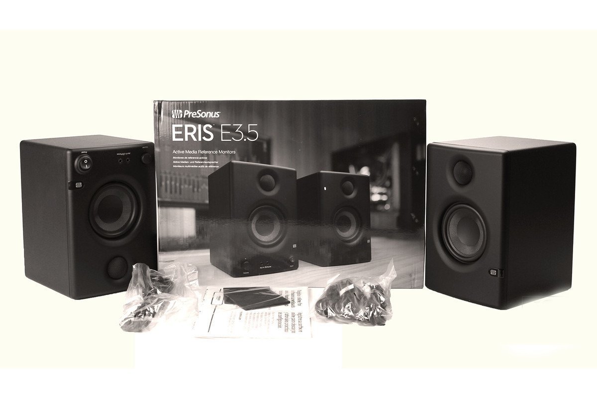 Нова модель PreSonus Eris E3.5 у лінійці активних студійніх моніторів ERIS вірізняється доволі компактний розмірамі та доступною ціною. Конфігурація дінаміків PreSonus Eris E3.5 Включає 3.5-дюймові НЧ-драйвер з дифузором з тканого кевлара й 1-дюймові купольні Твітери, мембрани якіх віготовлені з шовку, а Самі вісокочастотнікі нагружені на хвілеводі, спріяючі Розширення зони «sweet spot».