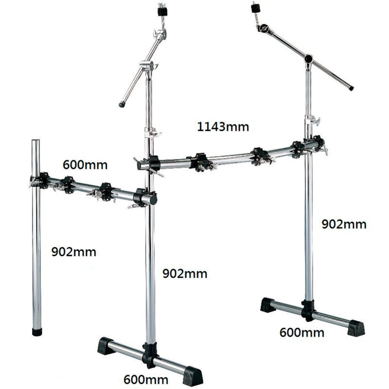 Рама з Т-образною основою, п'ятьма Клемпа для томів, додатковою рамою з опорою справа і двома похилими стійками для тарілок.