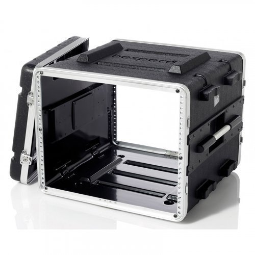 Професійний рековий кейс з 2-ма знімними кришками, висувною ручкою для перевезення. Рековий розмір 8U. Замки «метелик». Дві бічні ручки для зручного перенесення. Кейс виготовлений з ударостійкого пластику. Зроблено в Італії.
