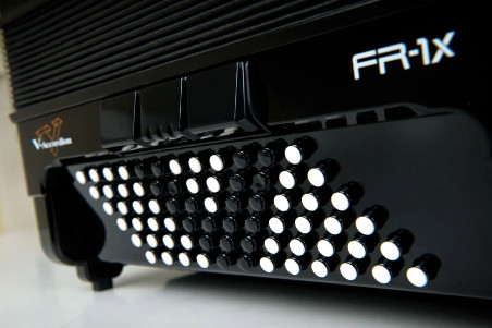 V-Accordion зробив революцію в світі акордеонів. Roland присвячує значні зусилля і ресурси для розробки і розвитку цих інструментів. FR-1Х - це новітній інструмент сімейства цифрових акордеонів. Цей компактний і легкий інструмент має ту ж гнучкість і портативність, як і його попередники FR-1, але при цьому включають в себе нові важливі можливості, такі як робота з накопичувачем USB і перероблений датчик тиску. З вбудованими динаміками нового покоління і трехціферним дисплеєм, баяни FR-1Х встановлюють новий стандарт для невеликого навчального та сценічного баяна.