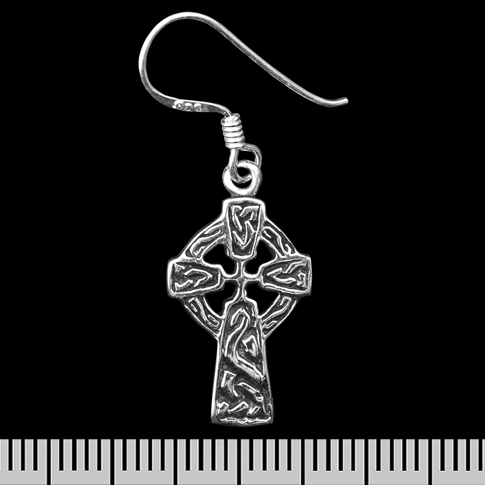 Сережка-гачок Кельтський хрест з візерунками (срібло, 925 проба) (ehs-039)