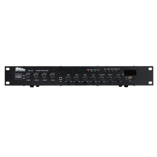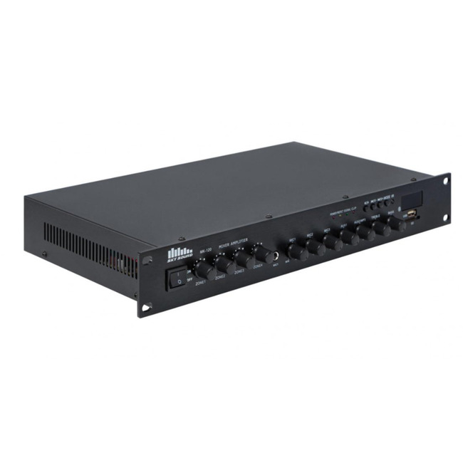 Багатозонний підсилювач потужності SKY SOUND MK-120W призначений для створення невеликих систем трансляції та озвучування приміщень з сумарною потужністю акустики не більше 120 Ватт. Дана модель трансляційних підсилювачів дозволяє озвучувати приміщення до 4-х різних зон (торговельні підприємства, офісні приміщення, кафе, ресторани тощо).
