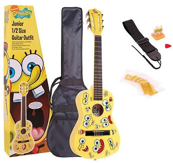 Розмір 1/2, для дітей, чохол для гітари, струни, гітарний ремінь, духовий камертон. Колір: жовтий, із зображенням Губки Боба