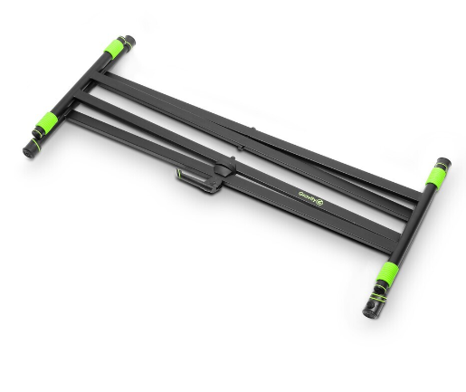 Подвійна стійка, міцна підставка для клавіатури з подвійною X-подібною опорою та вантажопідйомністю 65 кг. Висота регулюється до 90 см за допомогою замка Quick Lock. Сталева конструкція з чорним порошковим покриттям відрізняється посиленими стиками для максимальної міцності та довговічними протиковзними торцевими кришками.