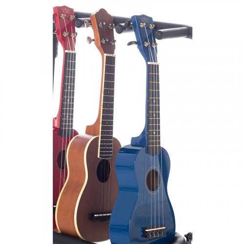 Bespeco UKE05 - стійка для п'яти укулеле, розроблена щоб гарантувати стійкість і безпеку інструментів. Завдяки інноваційному дизайну, ця стійка стала обов'язковим аксесуаром для професіоналів. Всі контактні частини між інструментом і підставкою покриті гумою.