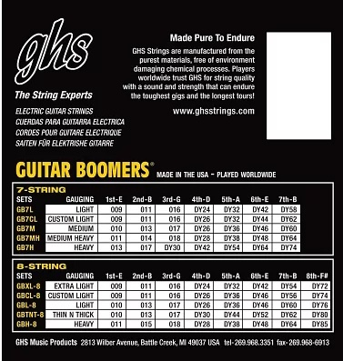 Калібр струн GHS STRINGS BOOMERS GBH-8: .010, .013, .017, .DY30, .DY44, .DY52, .DY62, .DY80.