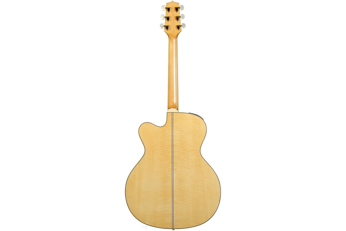 Електроакустика, Jumbo, верхня дека - цілісна ялина, боки і задня частина - вогняний клен, преамп - TK-40D, колір натуральний. TAKAMINE GJ72CE-NAT володіє формою деки Jumbo, цільною верхньою декою, прекрасним зовнішнім виглядом і високоякісною електронікою, завдяки чому є чудовою електроакустичною гітарою, створеною для виступів. Верхня дека виготовлена з цілісної ялини, а нижня дека і обичайка - з вогняного клена. Таким чином, інструмент виробляє гучне і потужне звучання, яке музиканти очікують від гітар форми Jumbo. Тонкий гриф з махагоні і накладка з лауреля радіусом 12 "забезпечують приємні відчуття, а підсилювач TK-40D з вбудованим тюнером, трьохсмуговим еквалайзером, регулятором gain, перемикачем mid contour, фільтром notch і перемикачем EQ bypass надають максимальну універсальність і високу якість звуку.