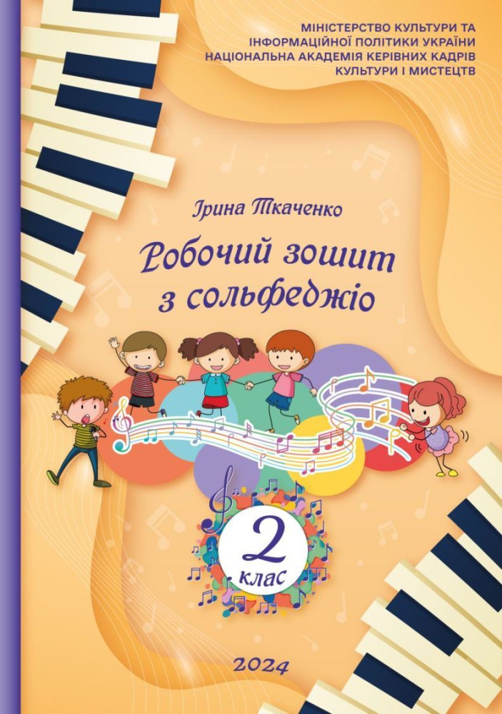 Ткаченко І. Є., Робочий зошит з сольфеджіо. 2 клас. ІІ видання : навчальний посібник / упор. І. Є. Ткаченко. - К., 2024 – 40 с.