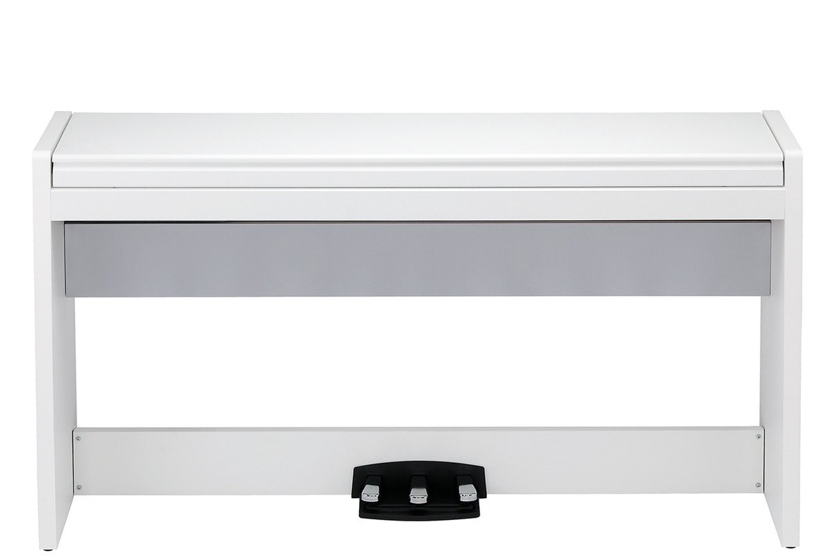 Стильний дизайн: KORG LP-380-WH U — це цифрове піаніно, яке відзначається неповторним стилем і органічно вписується в інтер'єр будь-якої кімнати. Глибина корпусу складає всього лише 26 см, таким чином, цей інструмент не займає багато місця. Пласка зверху дерев'яна кришка клавіатури забезпечує бездоганний зовнішній вигляд і не привертає зайвої уваги, якщо інструмент закритий і не використовується. З метою безпеки в конструкції застосований механізм плавного закривання кришки. Тонкий і стильний корпус разом з тим створює відчуття солідності і стійкості. Молоточкова клавіатура RH3, три педалі і динаміки великого діаметра забезпечують багате звучання фортепіано та природні відчуття від гри на інструменті.