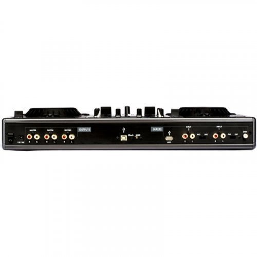 На передній стороні ми знаходимо мікрофонний TRS-вхід з регулюванням гучності і високих і низьких частот, кнопку Power, а також вихід для навушників з дуже зручним видом моніторингу "а-ля кроссфейдер". На задній панелі - 2 пари RCA-входів для зовнішніх пристроїв з перемикачами Phono / Line, 3 пари RCA-виходів - Master, Booth і Record, USB-вхід і вихід для підключення до комп'ютера. А також вхід для 12 В блоку пітанія.ссіонального рівня, в міцному сталевому корпусі. 2-дековий DJ-контролер MC4000 призначений для роботи з діджейським програмним забезпеченням Serato і поставляється в комплекті з Serato DJ Intro. При цьому користувач отримає можливість поновлення до повноцінної версії софта. Також сумісність контролера з Traktor від Native Instruments і Virtual DJ від Atomix.
