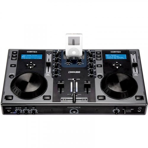 DMIX-300 - це робоча станція для діджеїв типу «все в одному», що поєднує в собі елементи пульта мікшера, блоку управління музичними треками і слот для Apple iPod. Таким чином, дві музичні композиції з Вашого Айпода можуть бути одночасно призначені на два канали dMIX-300. Кожен з каналів має LCD-екран, що відображає назву треку, час, пітч, а також хвильової графік композиції, Jog-колесо, Pitch-контроль в діапазоні +/- 4, 8, 16, 24%, кнопки Play / Pause і Cue. Також є 4 клавіші для направлення пошуку і 4 функціональні кнопки.