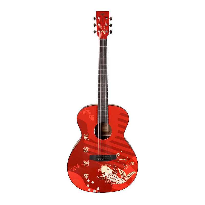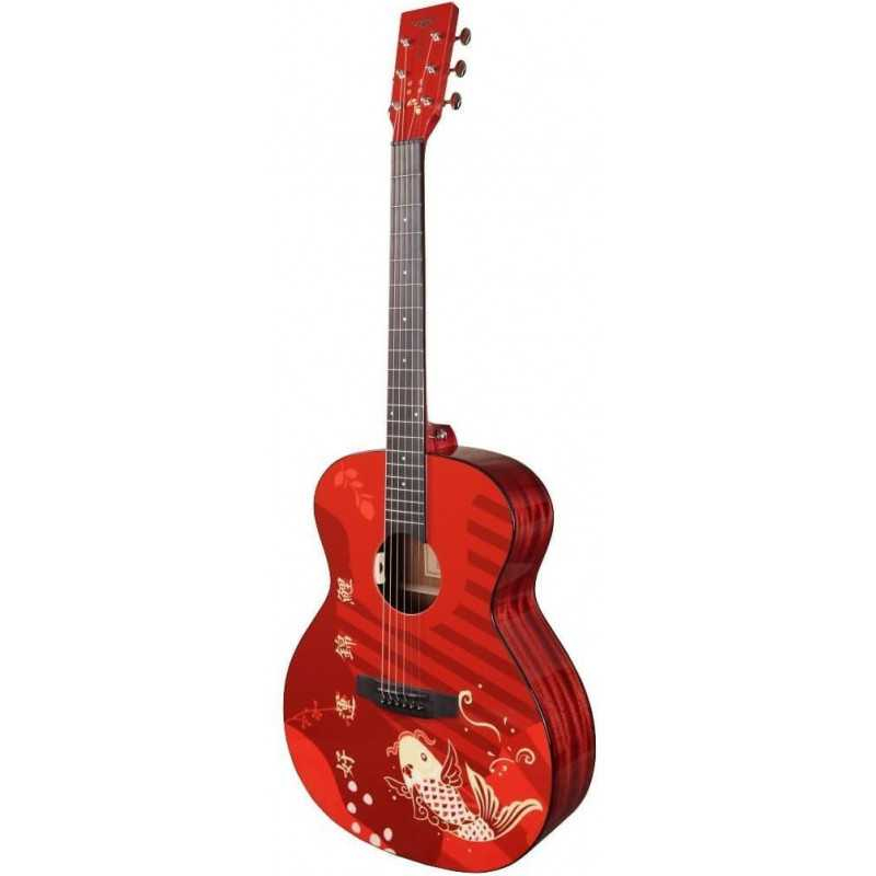 TYMA V-3 KOI – електроакустична гітара. Форма – гранд аудиторіум. Топ - цілісний, сітхінська ялина. Задня дека та боковини - махагон. Гріф – африканське червоне дерево. Бридж та накладка на гриф – штучний ебоні. Фініш – різнокольоровий принт. Електроніка – TYMA T-50. У комплекті - фірмовий гітарний чохол, ганчірка, ремінь.