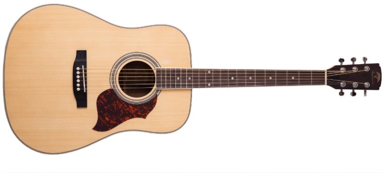 Верхня дека виготовляється з масиву ялини. Така деревина ідеально резонує на всьому частотному діапазоні та пом'якшує низькі частоти, що у поєднанні з корпусом дредноут створюють глибокий бас з хорошим сустейном. Дно та обичайка виготовляються з горіхового дерева. Завдяки такого корпуса,