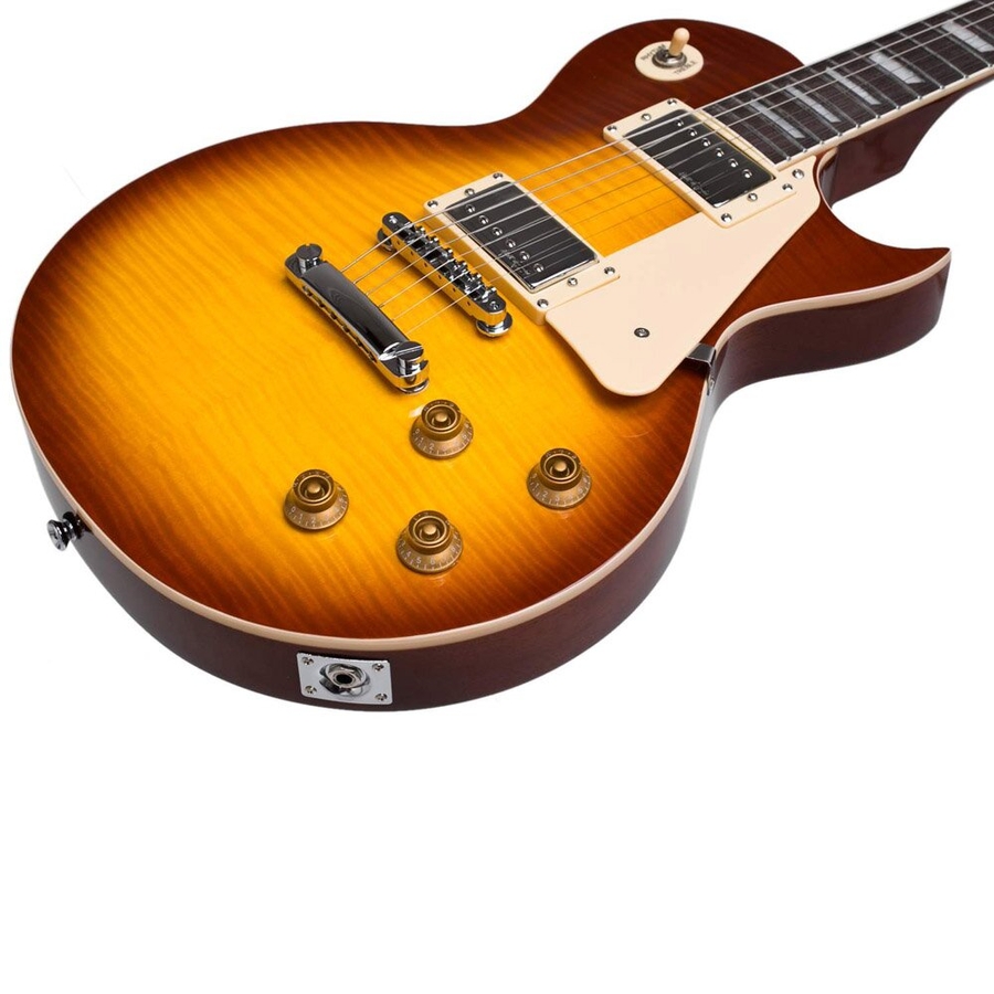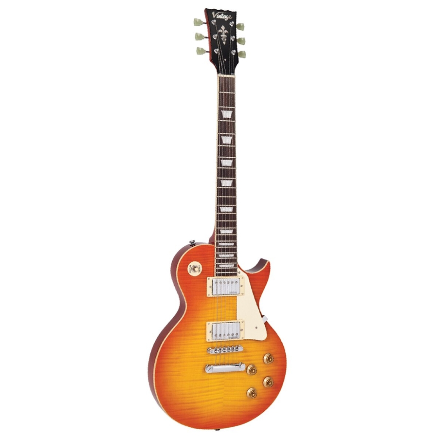 Корпус з червоного дерева з облицюванням Flame Maple Veneer забезпечує резонанс, тон і комфорт «правильного ваги». Vintage LV100CS відрізняється унікальною еволюційною формою корпусу з витонченим низхідним бічним плечем басів і геніально сконструйованої зміщеною п'ятою, що забезпечує покращений доступ до верхньої частини грифа.