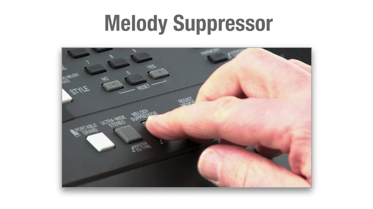 Melody Suppressor – уникальная функция, реализованная компанией Yamaha. Она позволяет удалять мелодическую линию из ваших любимых композиций, давая возможность вам самим проиграть ее. Просто подключите любой аудиоплеер с линейным выходом (например, телефон, компьютер или даже другой инструмент) к входу AUX и играйте с вашими любимыми музыкантами. Кстати, вход AUX также можно использовать просто для прослушивания музыки.
