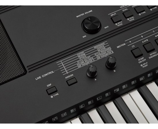 Флагман PSR-E серії, створений спеціально для виступів. Він обладнаний повнорозмірною динамічною клавіатурою на 76 клавіш, велику бібліотеку тембрів, що включає чудовий тембр рояля Live! Grand Piano, безліччю професійних функцій, і виділеним лінійним виходом для підключення до звукового обладнання або активним акустичним системам.
