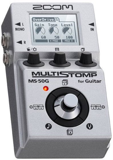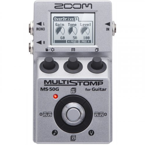 ZOOM MS-50G - компактна мульти педаль ефектів для електрогітари. Педаль ефектів ZOOM MS-50G поєднує в своєму компактному корпусі міць педалі мульти-ефектів і гнучкість емулятора кабінету. 55 класичних ефектів і модуляцій підсилювачів, простий і зрозумілий інтерфейс, авто-хроматичний тюнер і універсальні можливості харчування.