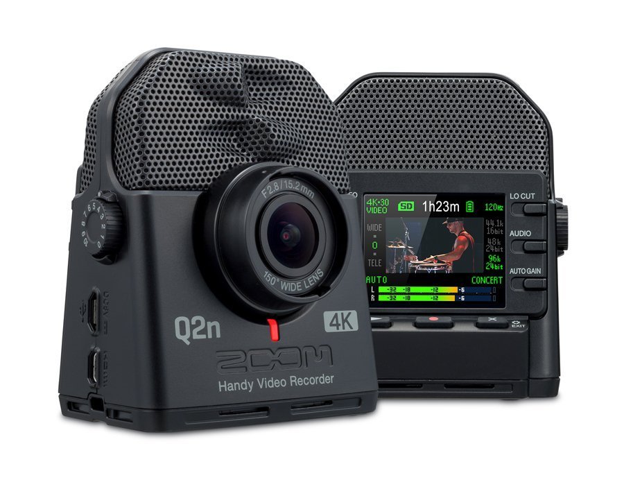 Портативний відеорекордер Zoom Q2n-4K: 150 ° ширококутний об'єктив; відео в HD: 720p, 1080p і 4K; вбудовані X / Y стереомікрофони (до 120 дБ SPL); запис на карту microSD / SDHC / SDXC до 256 ГБ; може використовуватися як аудіорекордер зі збереженням даних в AAC- і WAV-форматах до 24-біт / 96 кГц; частота кадрів: 4K / 30fps, 4K / 25fps, 4K / 24fps, 1080p / 60fps, 1080p / 50fps, 1080p / 30fps, 1080p / 25fps, 1080p / 24fps, 720p / 30fps, 720p / 25fps; наявність порту microHDMI; функція Auto Gain; кольоровий LCD-дисплей; 12 налаштувань Scene для різних умов освітлення; можливість підключення навушників для моніторингу аудіо; стереовход для підключення зовнішніх мікрофонів або інших аудіопристроїв; Low-cut для усунення фонових шумів і функція Auto Gain для автоматичного регулювання посилення; живлення від 2х батарейок AA; сумісність з програмним забезпеченням OBS Open Broadcaster Software, Skype і іншими популярними додатками